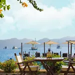 The accommodation has a private beach area with a sunbed and umbrellas.